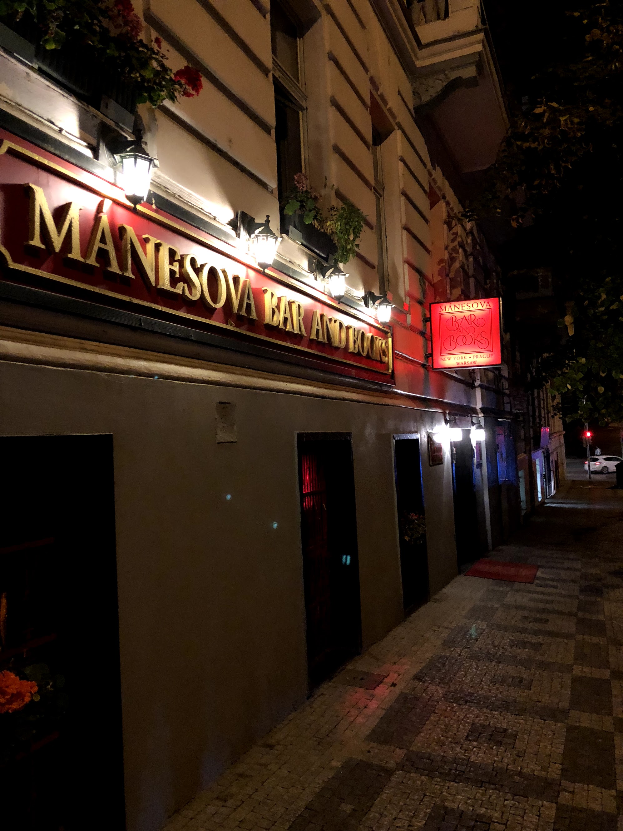 It’s not far from Riegrovy Sady, so we walked there after sunset. I was expecting a small cocktail bar in a room that felt like an old library, with lounge chairs and couches meant for wanna-be authors to socialize. Book clubs would want to meet here to discuss their recent adventure over a beer. I would want to go there with my wife, peruse the old first editions marking the floor-to-ceiling bookshelves with sipping my non-box wine.