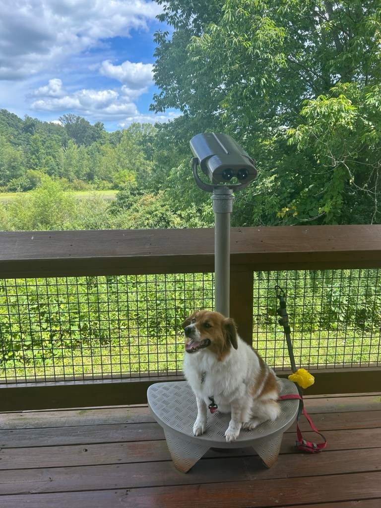 I’ll start with our go-to: Scioto Grove Metro Park. On the southside (thus, close to us) it offers more dog-friendly trails than any of the other metro parks we’ve been to yet. We also see park rangers while we’re there, indicating the park is well taken care of (and it does seem to be). Our most common trail is the Overlook Trail; this makes the trail sound a bit more exciting than it is, but there are wooden deck overlooks into the woods and over the river. Most are shaded, and some have tables to sit and enjoy the nature. The Overlook Trail is gravel, and though I wouldn’t say it’s crowded, there are also a good number of humans and their dogs enjoying the trail. The Overlook trail connects with the Arrowhead Trail, which loops back around to the large picnic area and playground. From there, we head back up the overlook trail to our car.